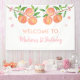 This adorable banner features hand painted watercolor peaches, peach blossoms and vibrant leaves.