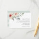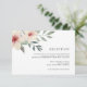 Elegant floral wedding reception card in muted tones of pink, peach and sage green features a watercolor floral peach blossom bouquet at the upper left corner, with your reception details in classic off black lettering. Personalise with your wedding reception details including timing, venue, address and any additional information like transportation or parking.
