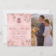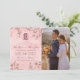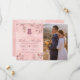 Oriental peach blossom / plum blossom, spring flowers in shades of pink with a double happiness symbol in calligraphy on a soft watercolor background chinese wedding announcement photo flat card with QR code.