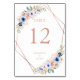 Modern wedding table number card, floral & geometrical.In the colors Rose-gold, Pfirsich & Blue.