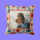 Peach & blue Spring floral pattern Custom photo throw pillow.It has Peach & blue spring floral pattern with custom photo in the middle box with white background. Make this Christmas special for Mum , grand mother, girlfriend or special one by giving this elegant Throw pillow Just use edit tool to change the image.