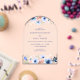 Modern, wedding, arch, acrylic invitation floral. In the colours Gold, Peach & Blue.