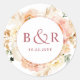 Elegant monogrammed wedding envelope seal or favour sticker with gorgeous watercolor floral detail in a beautiful blend of peach, orange, blush pink, cream and champagne hues. Centre in white with initials and second text line in burgundy. Two size options and several shape options to choose from. Bottom text line can be used for event's date, erase, or for the case of event favours add a short thank you message (i.e. "thank you for coming". Part of our "Peach Floral Delight and Burgundy" collection with a variety of coordinating products available. Visit the entire collection at: https://www.zazzle.com/collections/peach_floral_delight_with_burgundy-119085236838576621