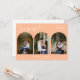 This save the date invitation features an elegant modern minimalist style of a three (tri) photo collage in an arch shape with a modern calligraphy of the wording "Save the Date" and elegant Serif fonts for a clean minimalist and modern look on a peach background, which is a beautiful way to inform about your upcoming wedding. Announce to your family and friends you are getting married with this invitation and add a personal touch with beautiful pictures of you and your soon-to-be better half. The simplicity of this design adds a touch of elegance to your wedding. It works well with many wedding themes and definitely a great addition to your wedding. Just customise the names and wording in a few easy steps and personalise the invitation card with your photo of the happy couple and replace the QR Code with yours.
