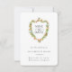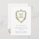 Elegant watercolor flowers and botanical foliage crest shaped frame in shades of peach and green, Wedding Save the Date Card. Modern and trendy typography design with calligraphy accents. Back of card features matching floral border.