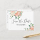 Send out your wedding Save the Date cards simply and beautifully with this contemporary style design that features bouquets of watercolor roses in peach and off-white with trailing greenery. A trendy hand-written type face is paired with elegant serif to convey your details with style and modern elegance. Personalise the front and back of this card with your details.