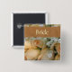 Wedding pin with peach roses, baby's breath accents and "bride" in script font. Perfect for bridal showers, receptions, wedding parties and more!