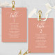 Help your guests find their table with this elegant modern seating plan cards with guests names. Double sided cards so guests can look from both, front or back for their names. Clear space all around giving you the liberty to use clips or punch hole for hanging displays, or use table holder/frame. Peach clay tone background and white text. Modern hand written calligraphy details. Several colour options. Have all table numbers in same colour or mix colours according to your event's colour theme.