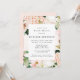 Design features a printed coloured with floral element in shades of peach and cream over greenery leaves and hydrangeas with tulips blooms on a light peach watercolor background.. Great for your wedding celebrations!
