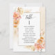 Help your guests find their table with this elegant modern seating plan cards with guests names with exquisite peach and cream floral and champagne cream watercolor stain. Double sided cards so guests can look from both, front or back for their names in hanging displays. Clear space all around giving you the liberty to use clips or punch hole for hanging displays, or use table holder/frame. Frame with delicate floral details in a beautiful blend of peach, orange, blush pink, desert rose and cream champagne hues. Modern hand written calligraphy details. Several color options. Have all table numbers in same color or mix colors according to your event's color theme. Part of our "Peach Floral Delight with Cream Champagne" collection with a variety of coordinating products available, including table number cards and menus. Visit the entire collection at: https://www.zazzle.com/collections/peach_floral_delight_and_cream_champagne-119627301812293761