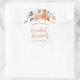 This Delicate Floral Bridal Brunch round sticker features delicate watercolor floral with the words "Bridal Brunch" in trendy peach script that is perfect for a spring or summer shower.