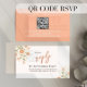 This wedding reply card showcases an elegant peach floral design with calligraphy script and a simple, formal layout. A convenient QR code directs guests to your wedding website for easy online responses. Perfect as a response insert card or reply enclosure card, it complements weddings in spring, summer, or fall. A timeless addition to your stationery suite that blends beauty and function for a seamless guest experience.