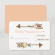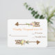 Lemon yellow and light peach flowers combine with red orange berries and dark blue green leaves to decorate whimsical brown hand drawn arrows at the top and bottom of this wedding response card. Between the arrow images is your custom text in orange and brown. Everything is placed on a white background. The back of the invitation is a peach colour, which complements the colours on the front. Unique, modern, and pretty! This response card matches wedding invitations and other wedding products in our store.