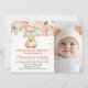 Peach Floral Bunny Photo 1st Birthday Invitation