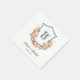 These beautiful watercolor cocktail napkins featuring a crest with multi-hued peach flowers and wispy natural greenery, the bride and groom's initials and their wedding date would be perfect for your wedding reception. They're traditional and classic while being fresh, modern and contemporary. They'll be gorgeous on the tables.