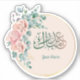 Celebrate the joyous occasion of Eid with our exquisite Eid Mubarak Sticker featuring elegant Arabic calligraphy, adorned with a delicate floral border. This beautifully crafted sticker adds a touch of sophistication and tradition to your festive greetings. Customise your message by adding a personalised name, making it a unique and heartfelt expression of your warm wishes. The combination of intricate calligraphy and charming floral details creates a visually stunning and culturally rich design, perfect for sharing blessings and joy during this special time. Embrace the spirit of Eid with this personalised and enchanting sticker.