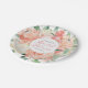 A custom paper plate for your bridal shower, this design features lovely peach, pink or off-white watercolor roses, peonies, hydrangea blossoms with trailing greenery. Edit the sample text with the bride's name and date of your event.