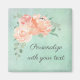 This design has a bouquet of peach watercolor roses and peonies in the upper corner over an aqua muted background. A text template is included that you can personalise with your desired wording.