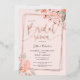 An elegant Modern script trendy bridal shower invitation with a cool painted peach coral and green floral watercolor with real rose gold foil geometric frame border terrarium style on light pastel pink.