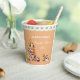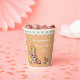 Celebrate in style with this personalised Bridal Shower Tea Party paper cup, perfectly designed for a charming tea party bridal shower. This whimsical design features a delicate floral teapot, a dainty teacup, and an elegant cake stand piled high with delicious cupcakes topped with soft pink and yellow icing and bright red cherries. Set against a soft peach background, the artwork is complemented by graceful white typography and elegant script fonts, creating a delightful and feminine touch. Ideal for the bride to be and her guests, this whimsical paper cup adds a sweet, sophisticated flair to any bridal shower tea party.