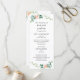 A floral theme design with peach flowers and green foliage. You can personalise the text and colours on this wedding program template.