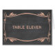 Elegant and trendy Flourish Chalkboard Table Number Card featuring a chalkboard look background and a fancy swirl and leaf art deco border in peach. Easy to customise, simply add the appropriate table number(s) in the text field provided. Click "Customise It" to find more personalisation options.