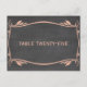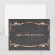 Elegant and trendy Flourish Chalkboard Table Number Postcard featuring a chalkboard look background and a fancy swirl and leaf art deco border in peach. Easy to customise, simply add the appropriate table number(s) in the text field provided. Click "Customise It" to find more personalisation options.