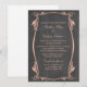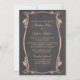 Elegant and trendy Flourish Chalkboard Wedding Invitation featuring a chalkboard look background and a fancy swirl and leaf art deco border in peach. Easy to customise, simply add your wedding details. Click "Customise It" to find more personalisation options.