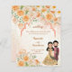 Peach flowers Indian couple wedding invite templat