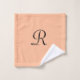 This unique, personalised bath towel, hand towel, and washcloth set is decorated with a Peach Fuzz background and elegant monogram. It's a modern, contemporary, trendy minimalist design. It is easy to personalise, just change or delete example monogram. You can buy the set or individual items. All Rights Reserved © 2023 Alan & Marcia Socolik.