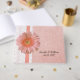 Rustic chic wedding guest book done in a peach coloured burlap look. Graphics of white lace, a satin looking peach coloured ribbon and a big peach Gerber daisy bloom, decorate the left front of the book. Personalise the text fields for your special day.