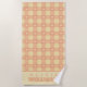 Peach Gingham Heart Pattern, Cute Kawaii Chequered Beach Towel