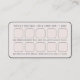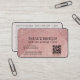 This business card has a peach glitter design with sans serif typography, and features a classic reward system on the back for returning customers to receive something, i.e. discount, free item, etc. Fill in the details with your company name, type of service, phone number, website, address, and qr code, and add store hours, message, and custom reward info on the back.