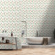 Sweet peach & green soft pastel leaves with vines were used to create this lovely design on this peel and stick wallpaper. The perfect covering to warm up your walls in any room of your choice.