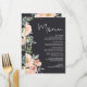 An elegant collection of hand drawn peach and green floral in on soft navy background. Coordinating back. Personalise with your event details easily and quickly, simply press the customise it button. Matching items to complete your event collection are available in our Zazzle store!