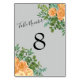 Peach Grey Wedding Spring Floral Table Number