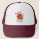 Show your love for summer with this peach theme hat. This velvety, sweet peach design features warm and bright tones of blush, scarlet, amber, coral and lilac. Personalise by changing or removing the text. I created this pattern from an image in my original acrylic painting.