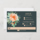 Elegant watercolor of flowers in shades of peach to orange trimmed with teal to jade green foliage with RSVP and menu selections in chic pale peach lettering. Change the teal background to anything to match your wedding theme. MATCHING items in our collection.