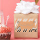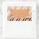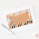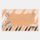 Peach Jingle Bells Stripe rectangle stickers features old fashioned jingle bells and a chrome snowflake on a background of peach, coral, and chrome diagonal stripes with a coral banner with text that reads Peace on Earth. We have matching envelopes, greeting cards, labels, and postage stamps!