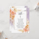 Help your guests find their table with this elegant modern seating plan cards with guests names with exquisite peach and cream floral and lavender purple watercolor stain. Double sided cards so guests can look from both, front or back for their names in hanging displays. Clear space all around giving you the liberty to use clips or punch hole for hanging displays, or use table holder/frame. Frame with delicate floral details in a beautiful blend of peach, orange, blush pink, dusty rose and cream champagne hues. Modern hand written calligraphy details. Several colour options. Have all table numbers in same colour or mix colours according to your event's colour theme. Part of our "Peach Floral Delight with Lavender Purple" collection with a variety of coordinating products available, including table number cards and menus. Visit the entire collection at: https://www.zazzle.com/collections/peach_delight_floral_and_lavender_purple-119272840408758311