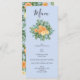Peach Light Blue Peony & Rose Floral Wedding Menu