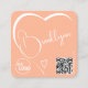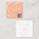 Peach Light Orange Heart Calligraphy Logo QR Code Square Business Card