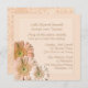 Pretty wedding invitation done in a peach linen colour, with graphics of an embossed raised looking square text area, and lovely graphic enhanced peach Gerber daisies decorating the bottom left corner. Text in a light brown script is fully customisable to read what you want. Beautiful and delicate invitation for a Spring and Summer wedding.