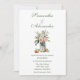 A lovely design, this wedding invitation features a floral peach mason jar design. There are templates in a beautiful green font. Customise your wedding invitations today!