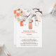 Engagement invitation featuring peach and light gold mason jars, lovebirds, flowers and hanging heart string - cute and whimsical perfect for spring and garden parties.