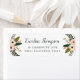 Chic floral return address labels frame your name and address with delicate peach and blush pink flowers, buds, and lush green botanicals.