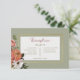 This beautiful floral design features a bouquet filled with peach, pink, and white flowers on a dusty sage green background with a gold frame. It's part of the Peach Mimosa Blooms Floral Wedding Suite collection of cards created by Simply Farmhouse Press.