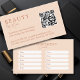 Keep your business looking polished and professional with this elegant, minimalist appointment card. Designed in timeless peach and orange, this double-sided card features a clean layout for appointment scheduling on one side and your business details on the other — including a customisable QR code that links directly to your booking page, website, or social media.
