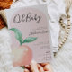 Adorable peach party invitation with a modern arch.