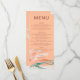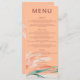 Elevate your wedding tablescape with this peach modern wedding dinner menu. Featuring abstract watercolor botanical elements in warm, romantic tones, this two-sided design presents your carefully curated meal on the front and a stylish art motif with your names on the back. Perfect for elegant, modern, or boho-inspired weddings.
